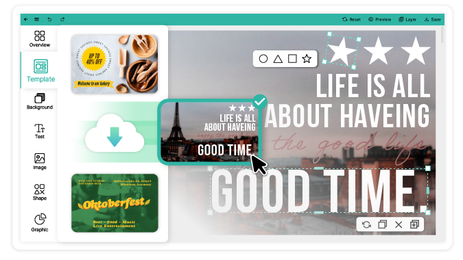 Use built-in or uploaded images to enhance your visuals. Adjust them freely with just a click to make your content stand out!