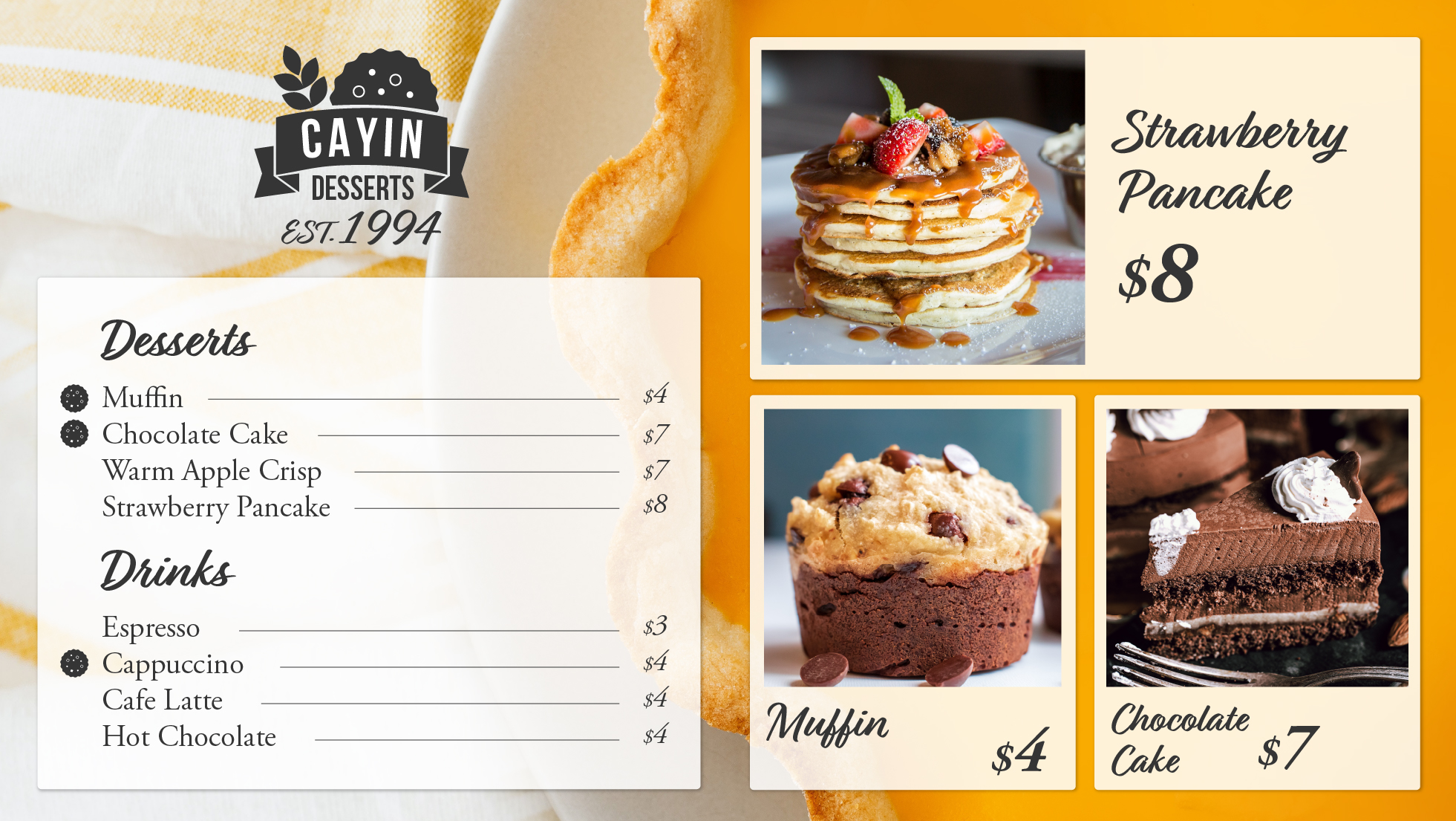 Easily log in to the GO CAYIN platform and create your own digital poster. Customize images, text, and animations, then sync to digital signage — even embed YouTube videos to grab attention!